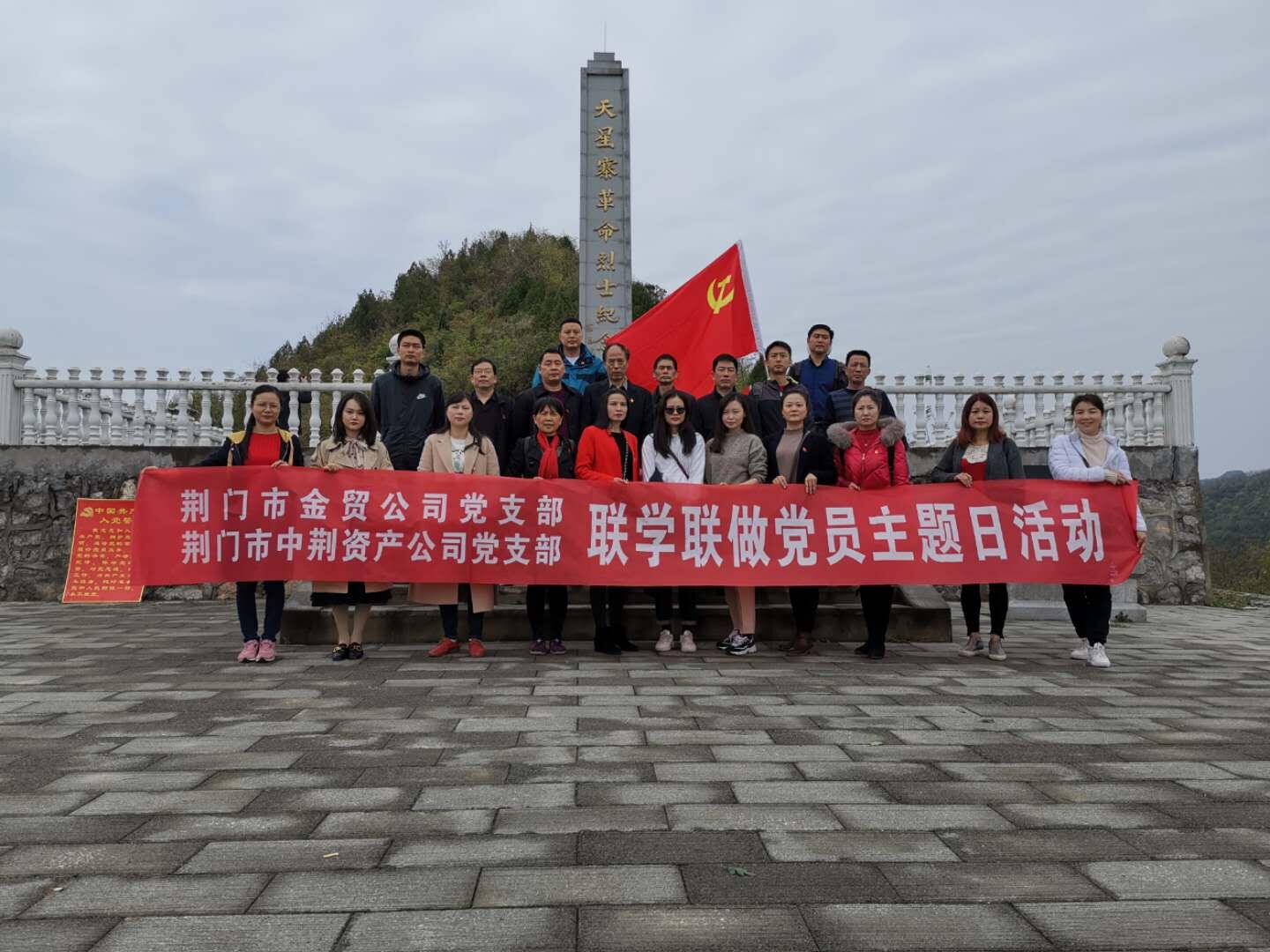 2019年4月3日(星期三)上午,市中荊資產(chǎn)公司機關支部、市金貿(mào)公司機關支部組織全體黨員在荊門市仙居鄉(xiāng)天星寨革命烈士紀念碑聯(lián)合開展了2019年4月份聯(lián)學聯(lián)做主題黨日活動。該活動以“學習貫徹全國‘兩會’精神、開展國家安全專題學習、學習‘共產(chǎn)黨員不準信仰宗教’及開展形式多樣的革命傳統(tǒng)教育”等為主題的2019年第4個“黨員主題活動日”學習大會。