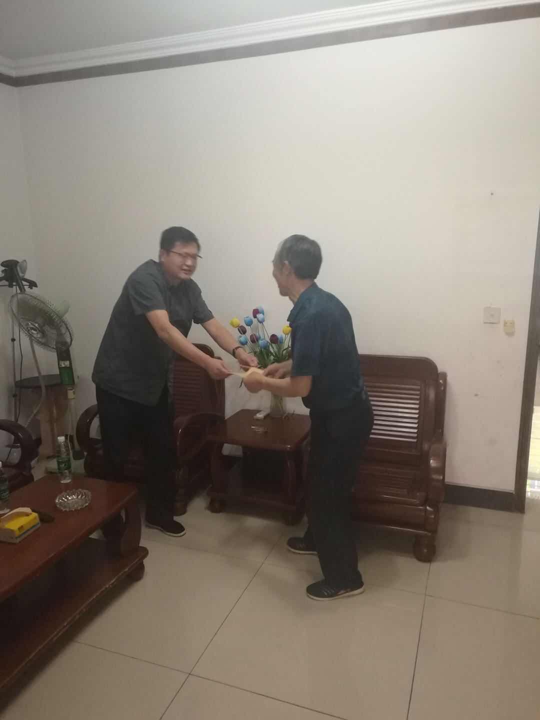 2019年6月28日,中荊集團黨委書記、董事長肖為代表集團公司,分別走訪慰問了原荊門市鋼制家具廠廠長張敏同志和原湖北金宇水泥總廠副廠長王云福同志,同他們親切交流,詳細詢問了他們的家庭生活、身體狀況,并送去黨組織溫暖。肖董事長叮囑相關(guān)負責同志,老干部們?yōu)槠髽I(yè)發(fā)展作出了積極貢獻,為企業(yè)改制付出了心血,要多關(guān)心企業(yè)老黨員老干部,力所能及幫助他們解決實際困難,讓他們安度退休生活。